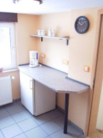 Küche : Herd, Kühlschrank, Kaffeemaschine, Besteck, Geschirr